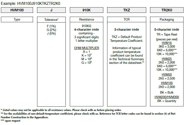 | 0204 | 0.16W | 1% | 510K | 3K/Tape Reel |