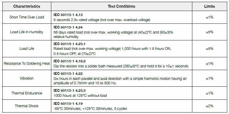 Performance Specifications for Slug Resistor Center Coated-SLC series