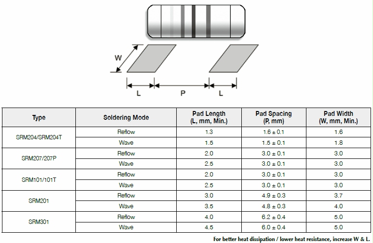 Suggested pad layout for Surge Resistant MELF Resistor, SRM series