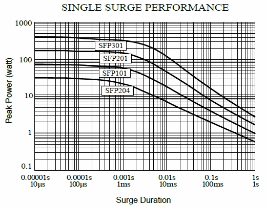 Stabilized Film Power MELF Resistor - SFP series, is showing the surge performance from 10uS to 1S.