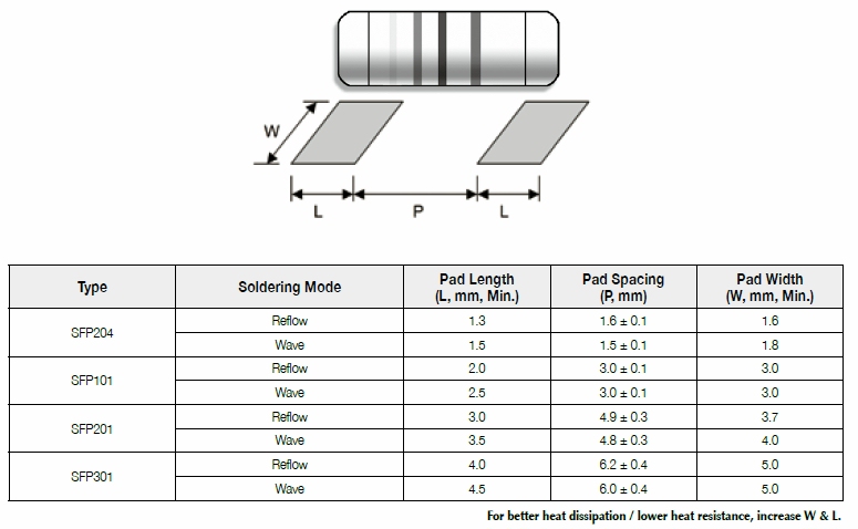 Suggested pad layout for Stabilized Film Power MELF Resistor - SFP series
