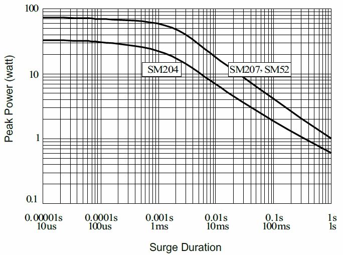 Stabilized Metal Film MELF Resistor -SM series, is showing the surge performance from 10uS to 1S.