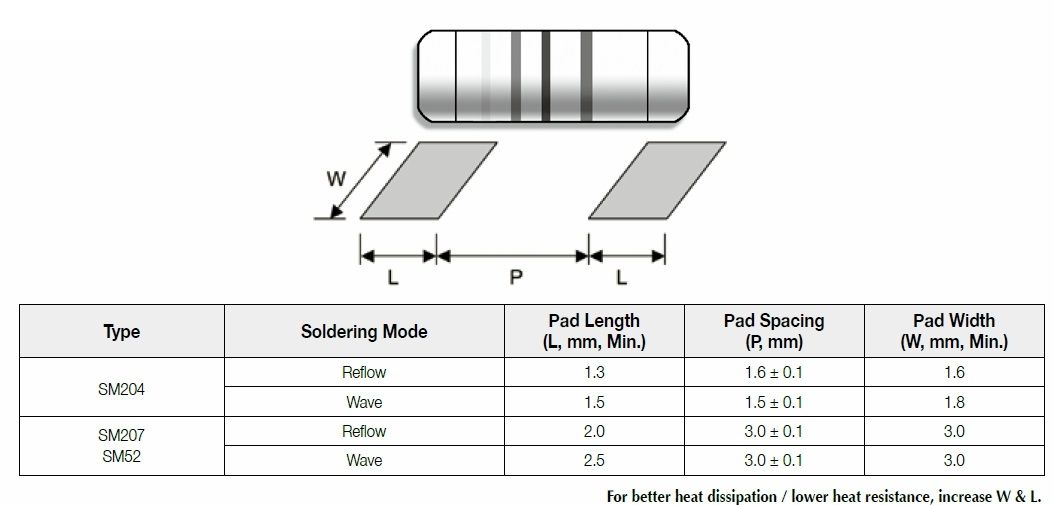 Suggested pad layout for Stabilized Metal Film MELF Resistor , SM series