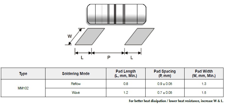Suggested pad layout for Metal Film MELF Resistor, MM102